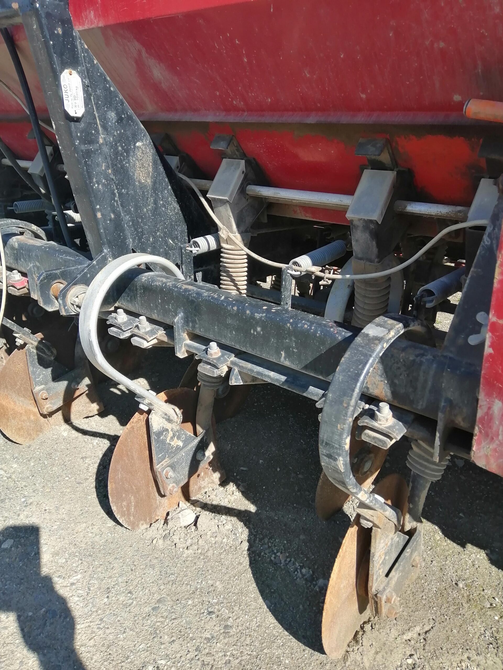 JUKO 2,5M kombi såmaskin type slep med store hjul, skåler på gjødsel siden, slepe labber på så siden, etterharv, arealmåler, sold